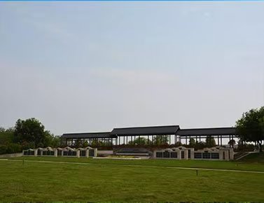 整个园区地形狭长,丘陵起伏,面临倒水河,恰似一条出水蛟龙,呈“平地起砂”、“蛟龙出水”、“玉带缠腰”的风水格局,藏风得水,是一块不可多得的安葬先人的风水宝地。